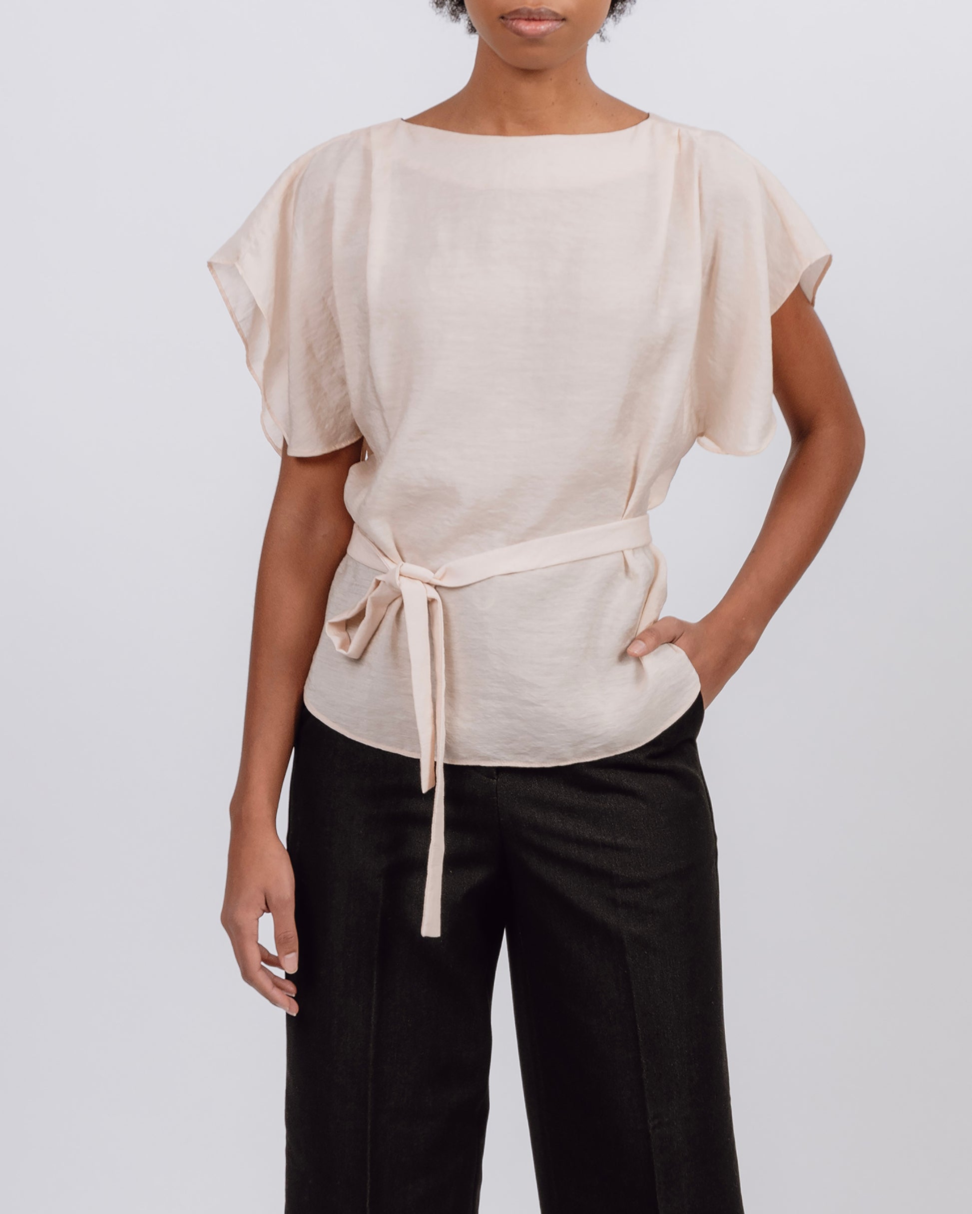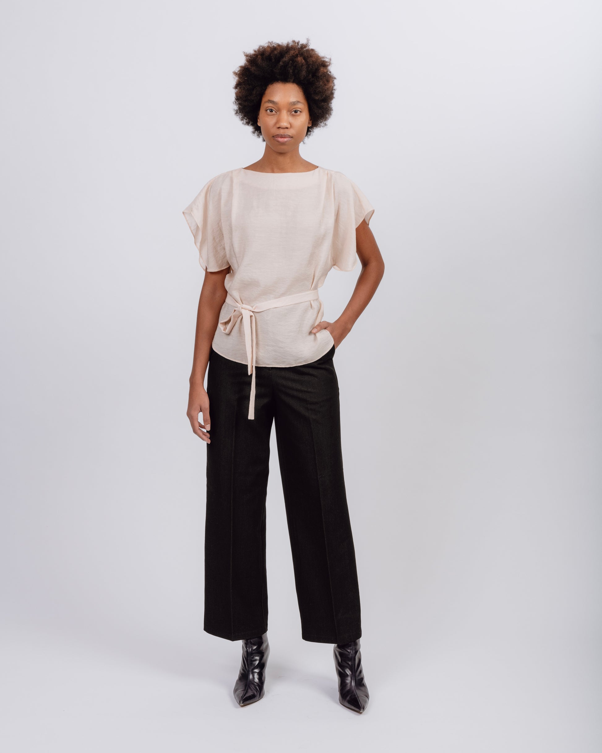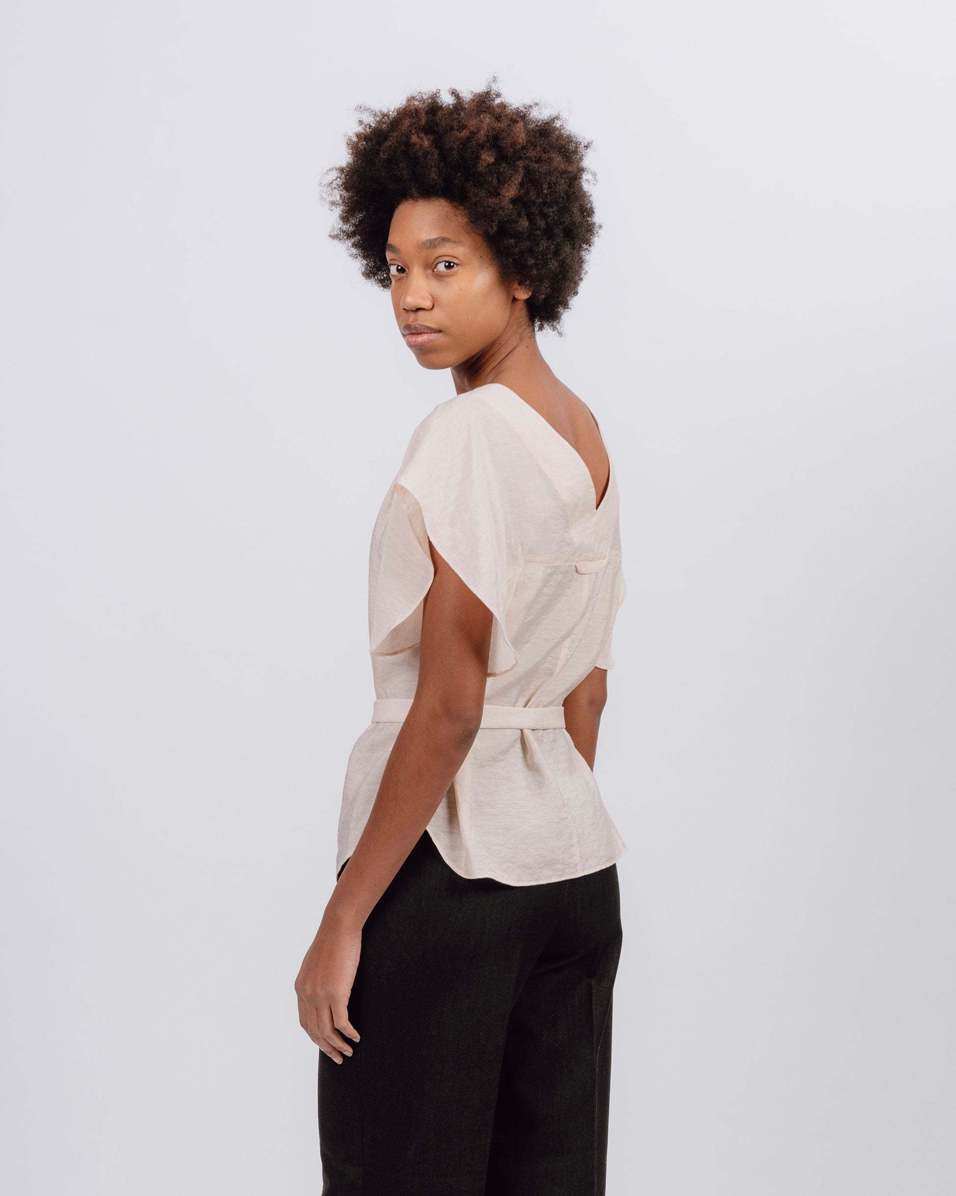 Light as air, effortlessly elegant. The Air Top is crafted from a breathable blend of rayon and linen, offering a soft drape with a refined texture. The delicate flutter sleeves and adjustable waist tie create a feminine silhouette, while the open-back detail adds a touch of understated sophistication.