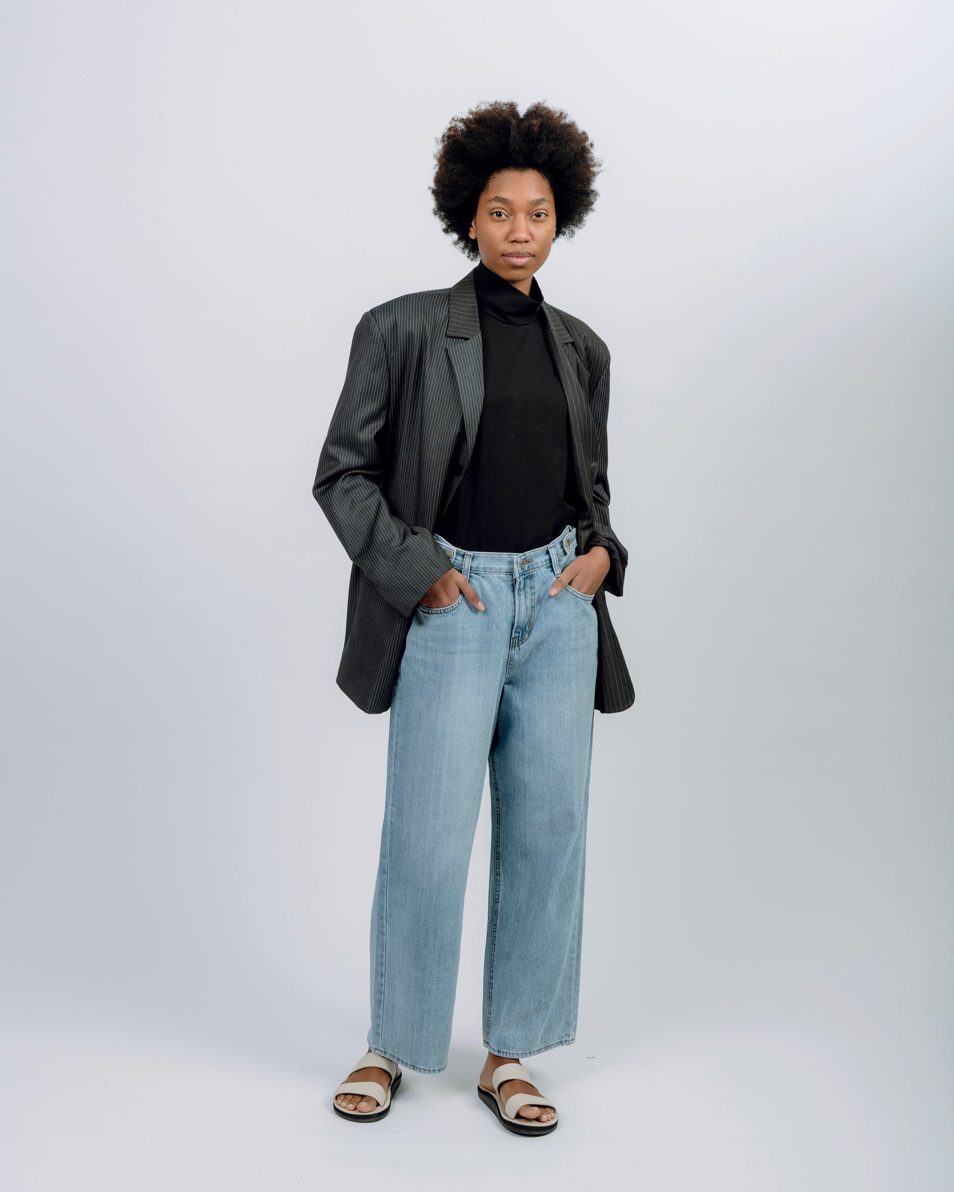 A fierce, oversized jacket with mismatched stripes. Perfect for meetings or your next business flight, this Dadaism Blazer ensures you stand out, no matter the occasion.