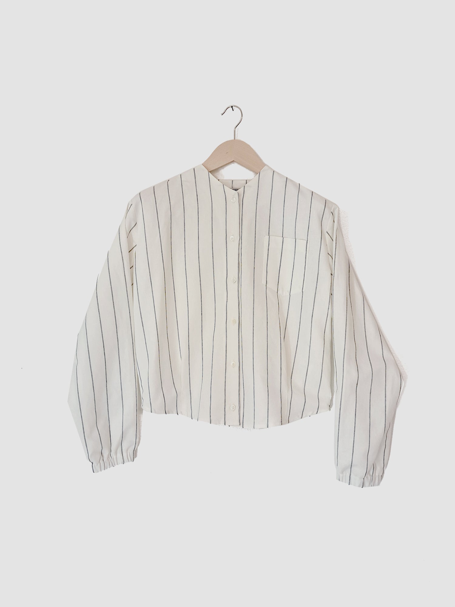 A crisp "shacket" that can be worn alone or layered with your favorite t-shirts. The back features a unique 3D drape detail.