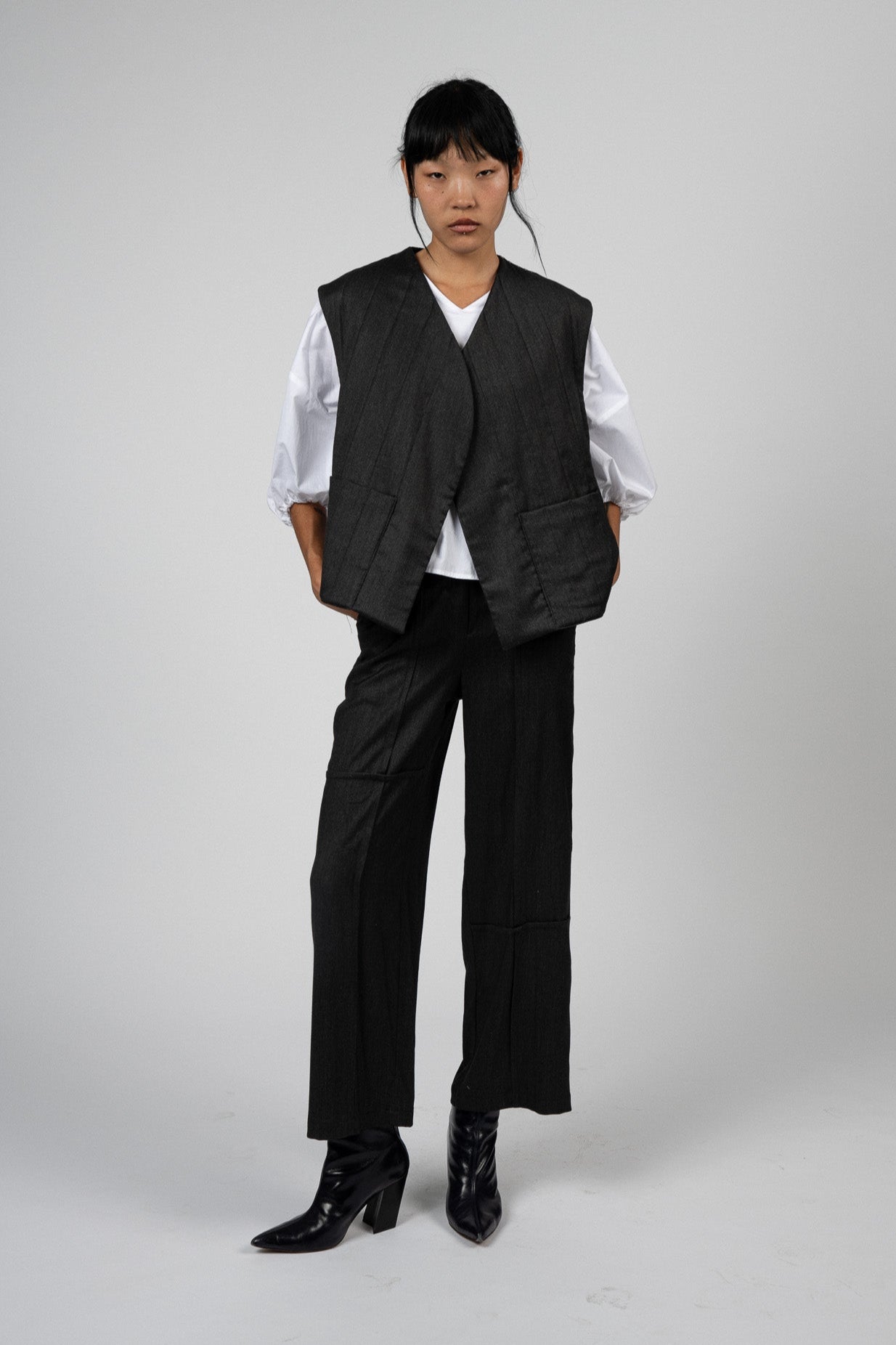 The Nubi Vest blends Swiss precision with Korean artistry, inspired by Buddhist monks’ winter garments. Featuring hand-stitched seams, crafted inside and out in two steps, and a back slit for added comfort, it embodies sustainability and heritage. Curvy stitches symbolise nature’s beauty, making this limited-edition piece a timeless design.