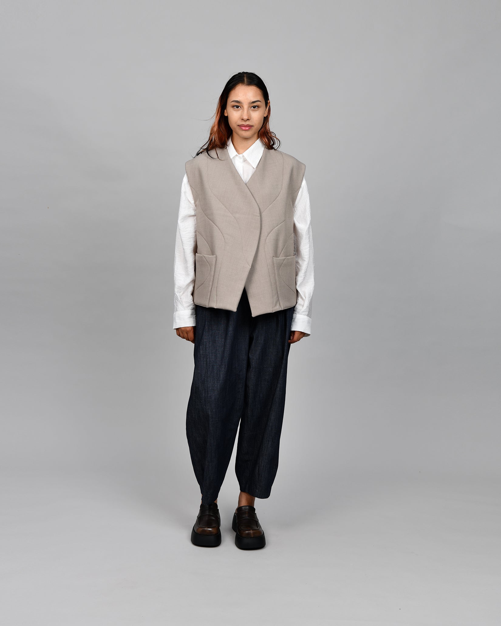 The Nubi Vest blends Swiss precision with Korean artistry, inspired by Buddhist monks' winter garments. Featuring hand-stitched seams, crafted inside and out in two steps, and a back slit for added comfort, it embodies sustainability and heritage. Curvy stitches symbolise nature’s beauty, making this limited-edition piece a timeless design.