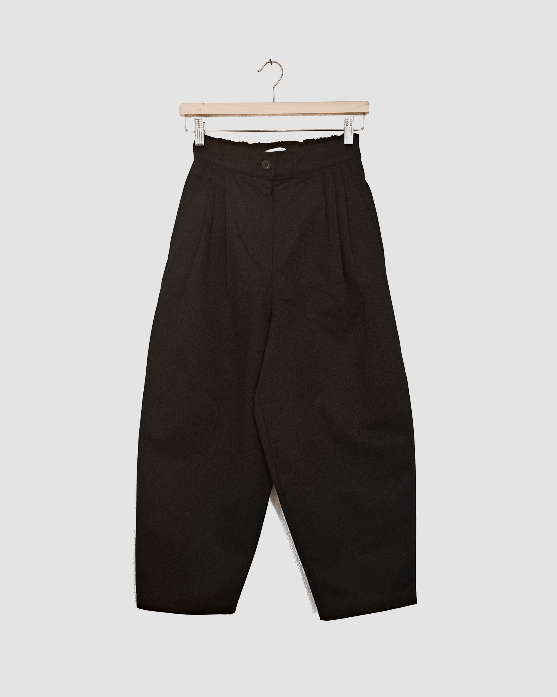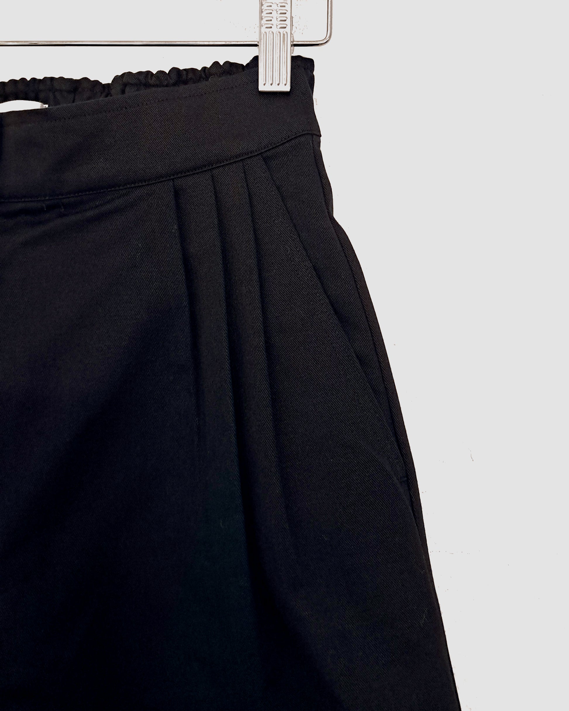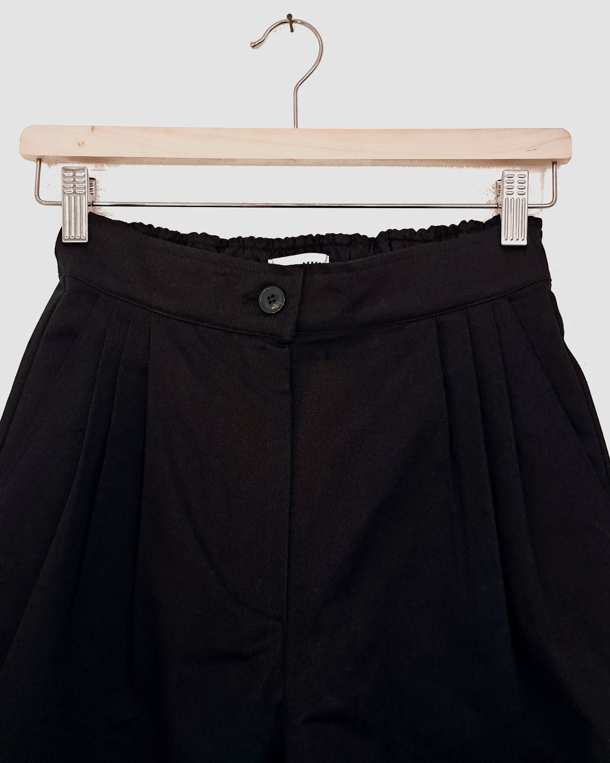 Tailored with sophistication while ensuring maximum comfort. Features two pleated folds at the waistline and an integrated elastic band at the back. A unisex piece.