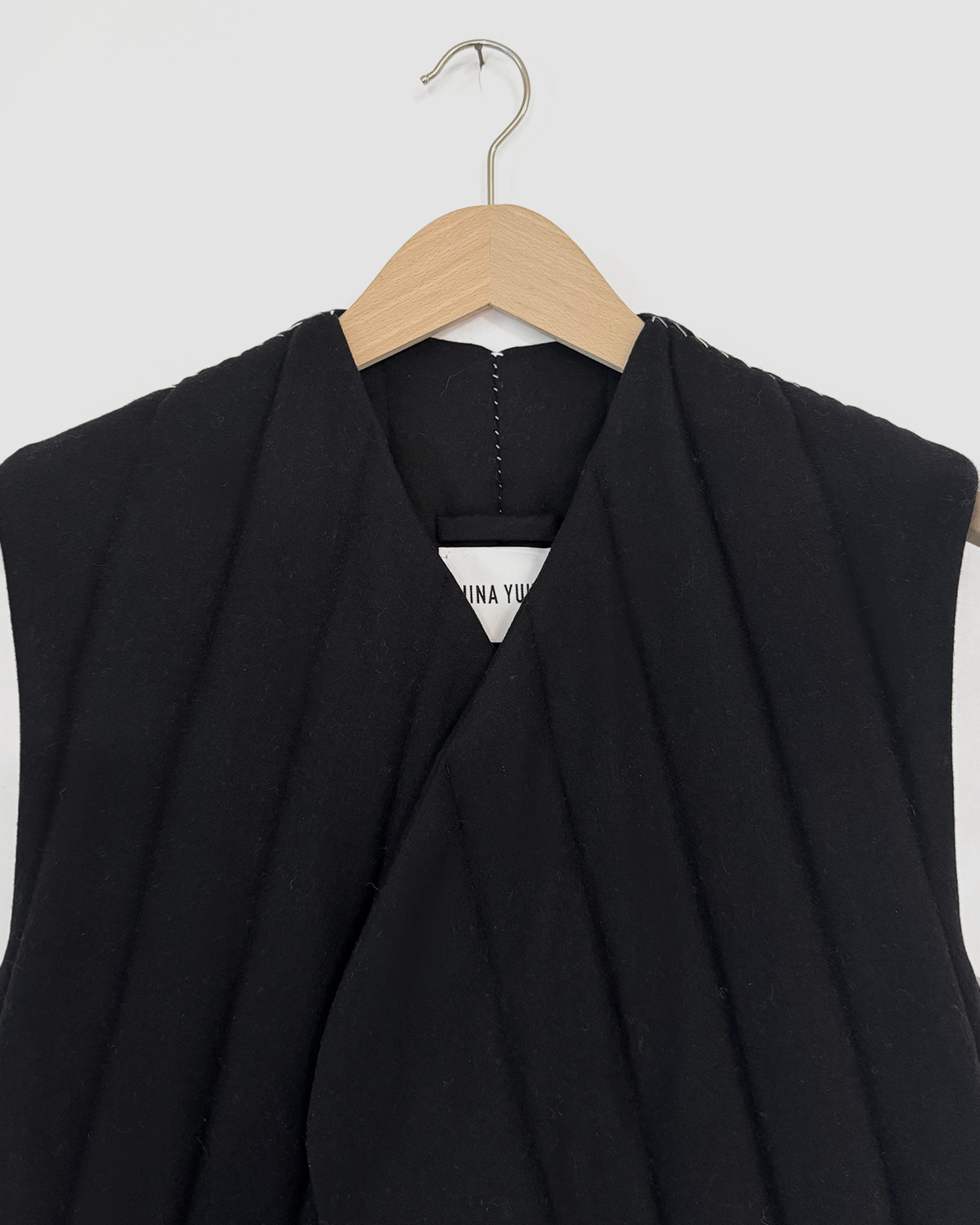 Extended in length and presence, it becomes a statement layer that carries the discipline of Korean stitching into a more pronounced silhouette.
