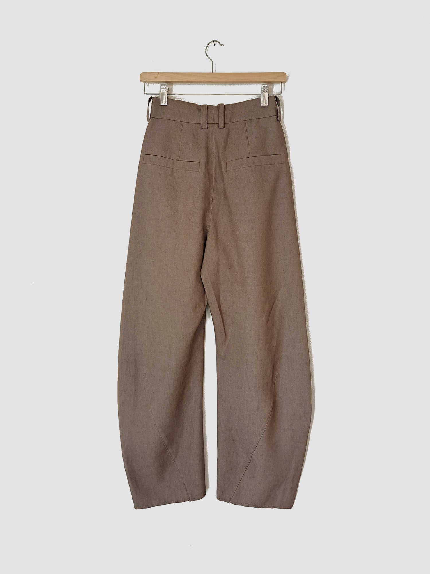 The distinctive curved silhouette is achieved through our signature 3D draping technique, offering freedom of movement and quiet elegance.